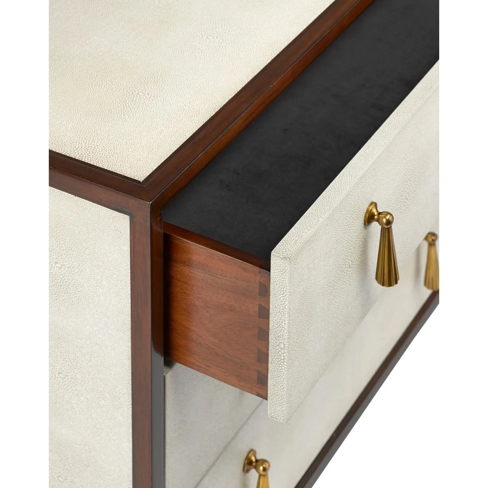 - Matériau : Faux galuchat / Acajou / Laiton coulé